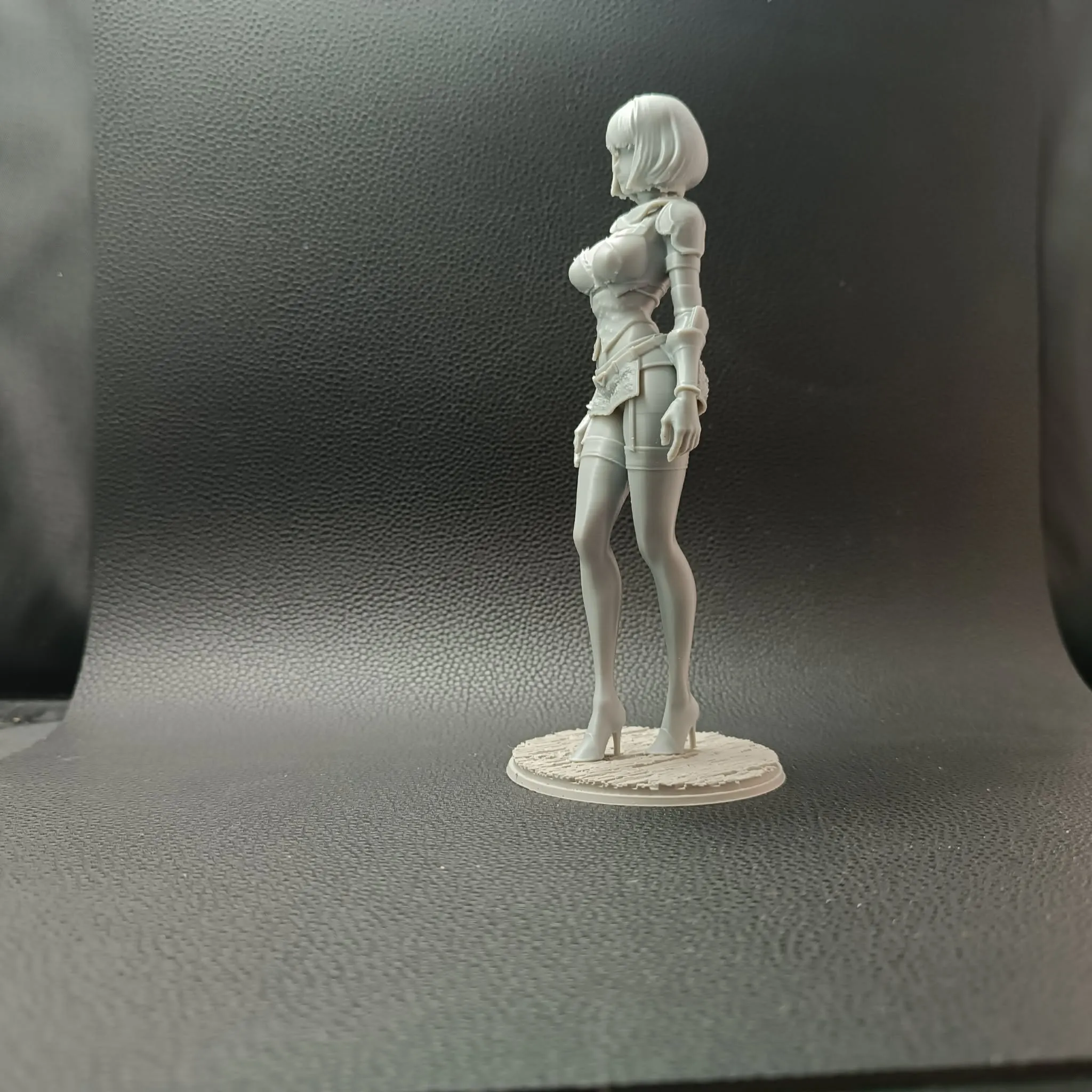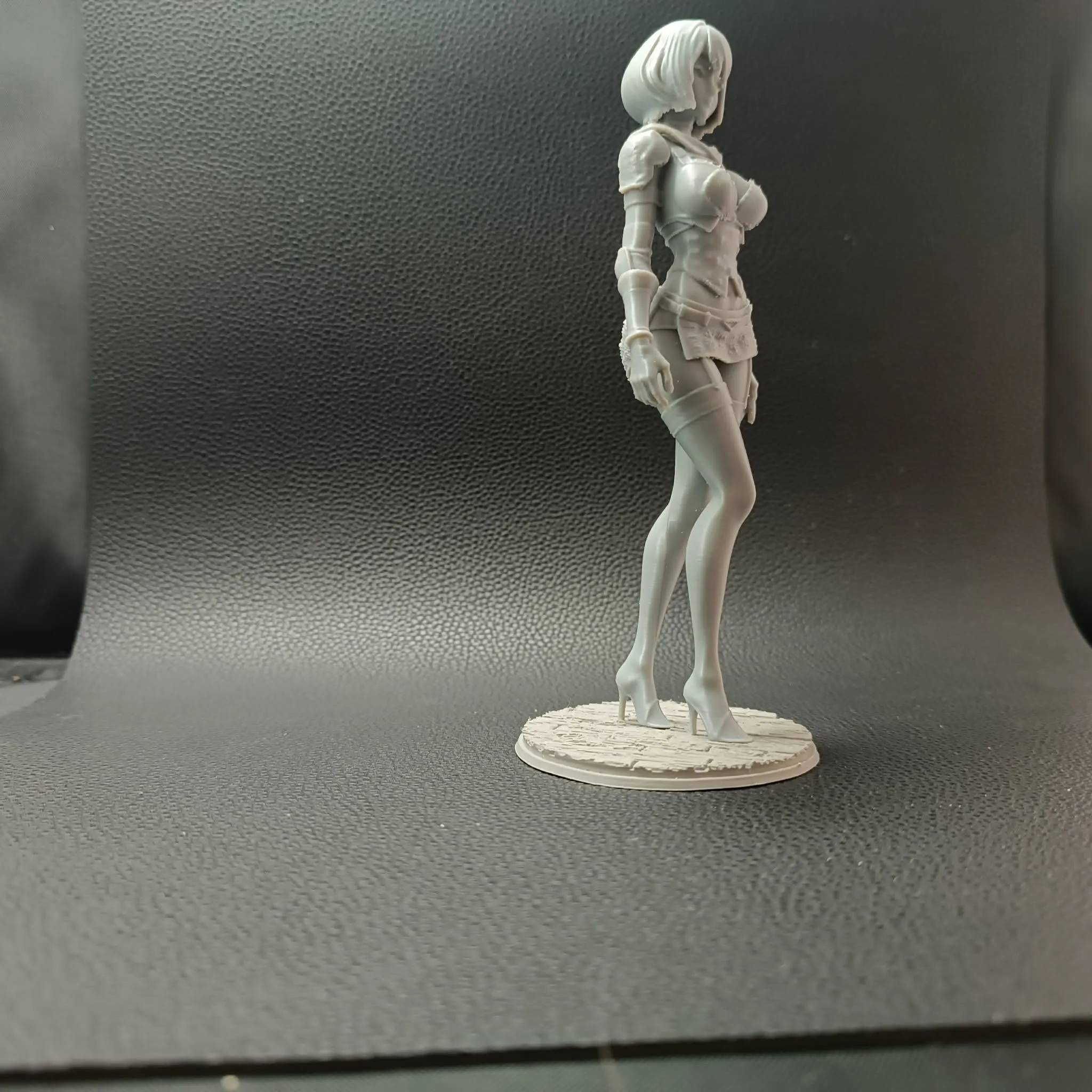 Printed using FDM technology with supports, the model maintains crisp edges and defined surface details. The round base features a wood-textured floor pattern that enhances the presentation and stability of the piece. Supports ensure clean overhangs, especially around the hair, arms, and skirt elements, resulting in a solid and display-ready collectible.