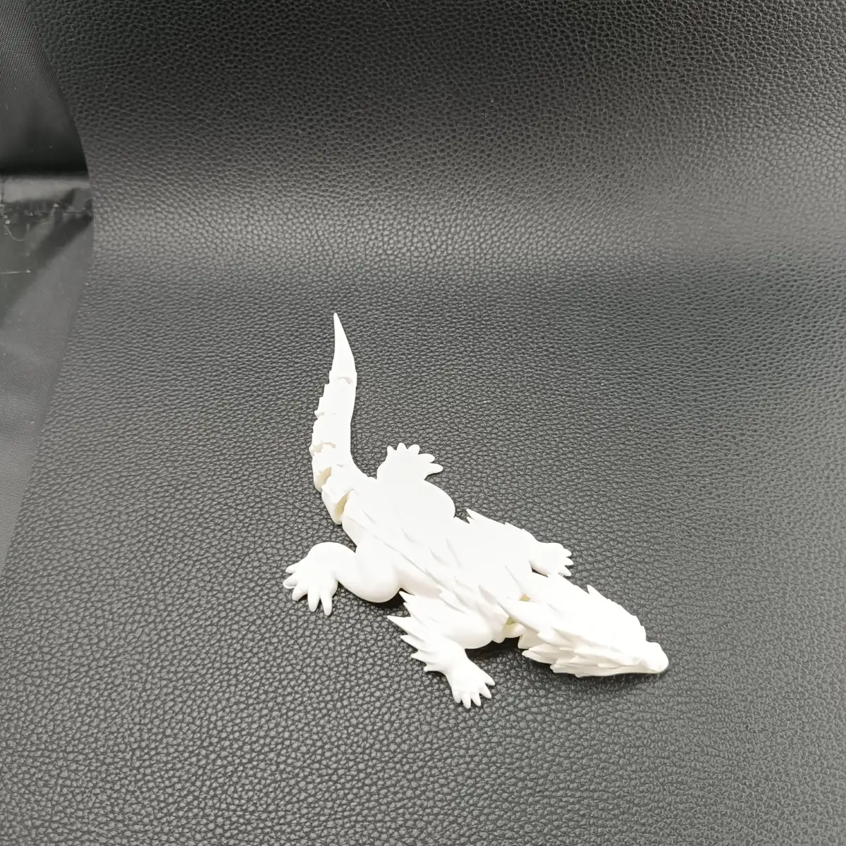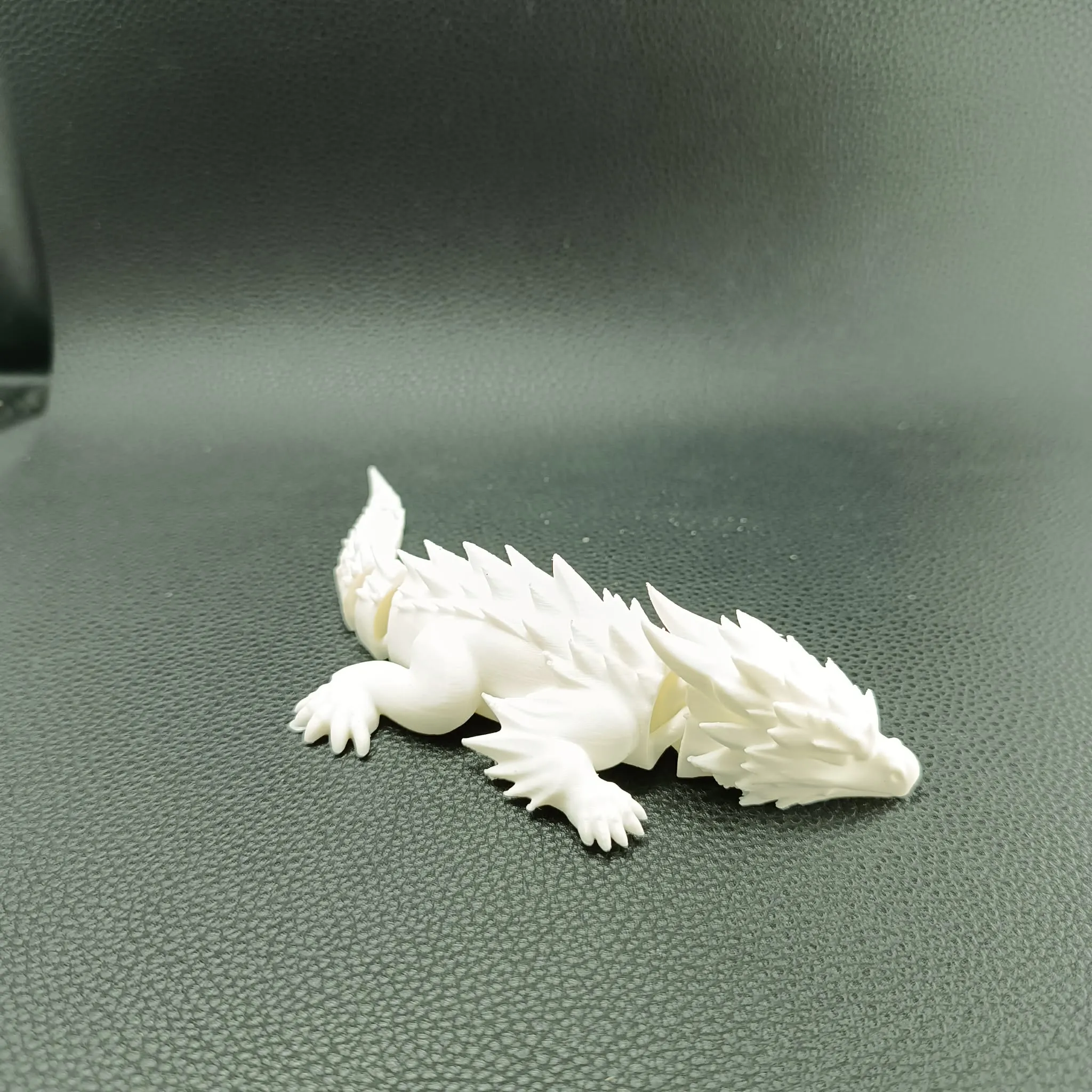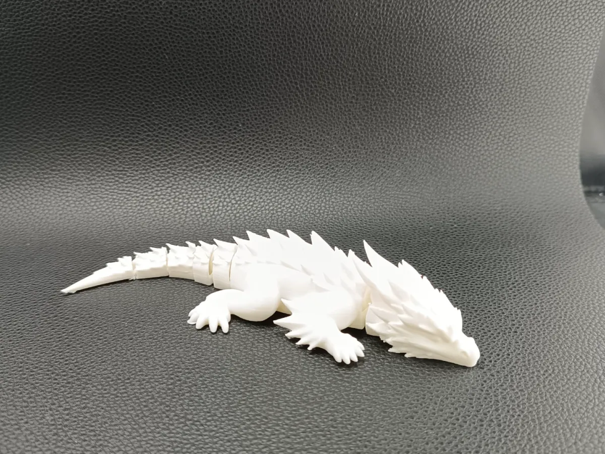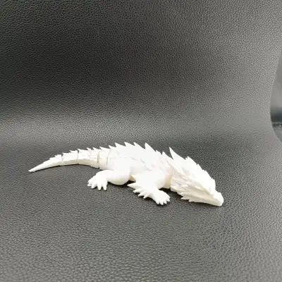 This dragon features an aggressive, streamlined head, dynamic dorsal spikes, sturdy legs, and a fully articulated segmented tail that moves smoothly straight off the print bed. The sculpted scale and spike details give it a bold fantasy aesthetic while maintaining clean printability.