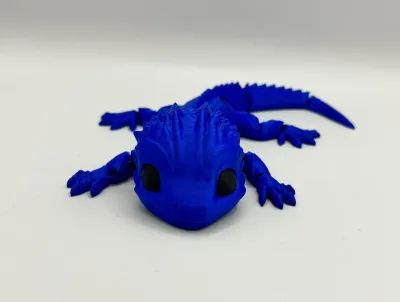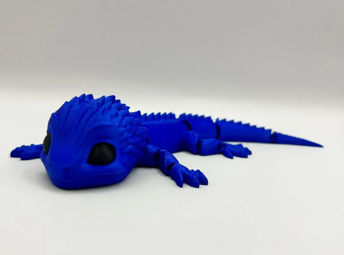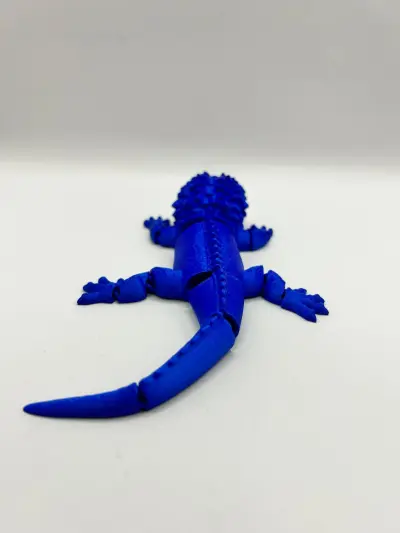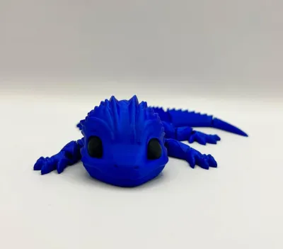 A fiercely vibrant and fully articulated 3D-printed dragon in sapphire blue. Its segmented body allows it to bend and pose, making it an excellent fidget toy for stress relief or a unique desk decor for fantasy lovers.