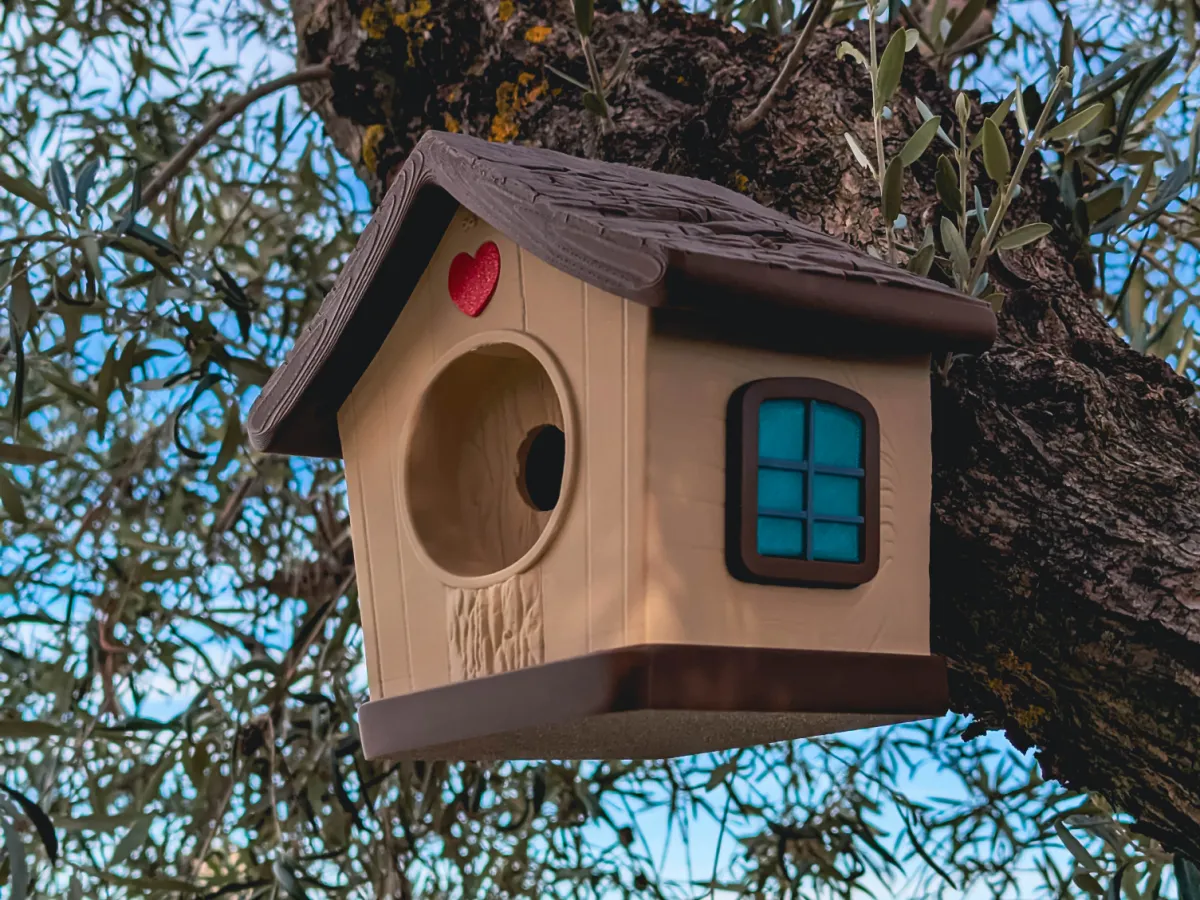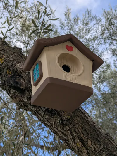 It mimics natural cavities such as holes in trees that some bird species use for shelter and raising their young. Birdhouses are often used to support bird populations and can help attract birds to gardens, where some species also contribute to pest control. This one was made out of PLA, but it is strongly recommended to use PETG or ASA/ABS if it is installed outside.