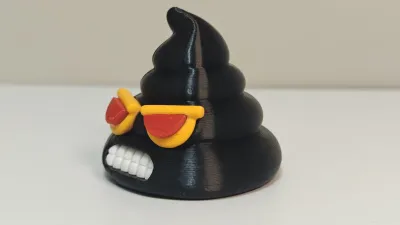 Main Shape: A classic spirally stacked poop form, with a black body that clearly showcases the textured layering typical of 3D printing.