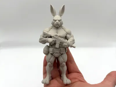 Meet the Easter Enforcer – the most elite bunny in the basket. This muscular, no-nonsense hare is here to protect your chocolate stash and keep your prints looking sharp.
