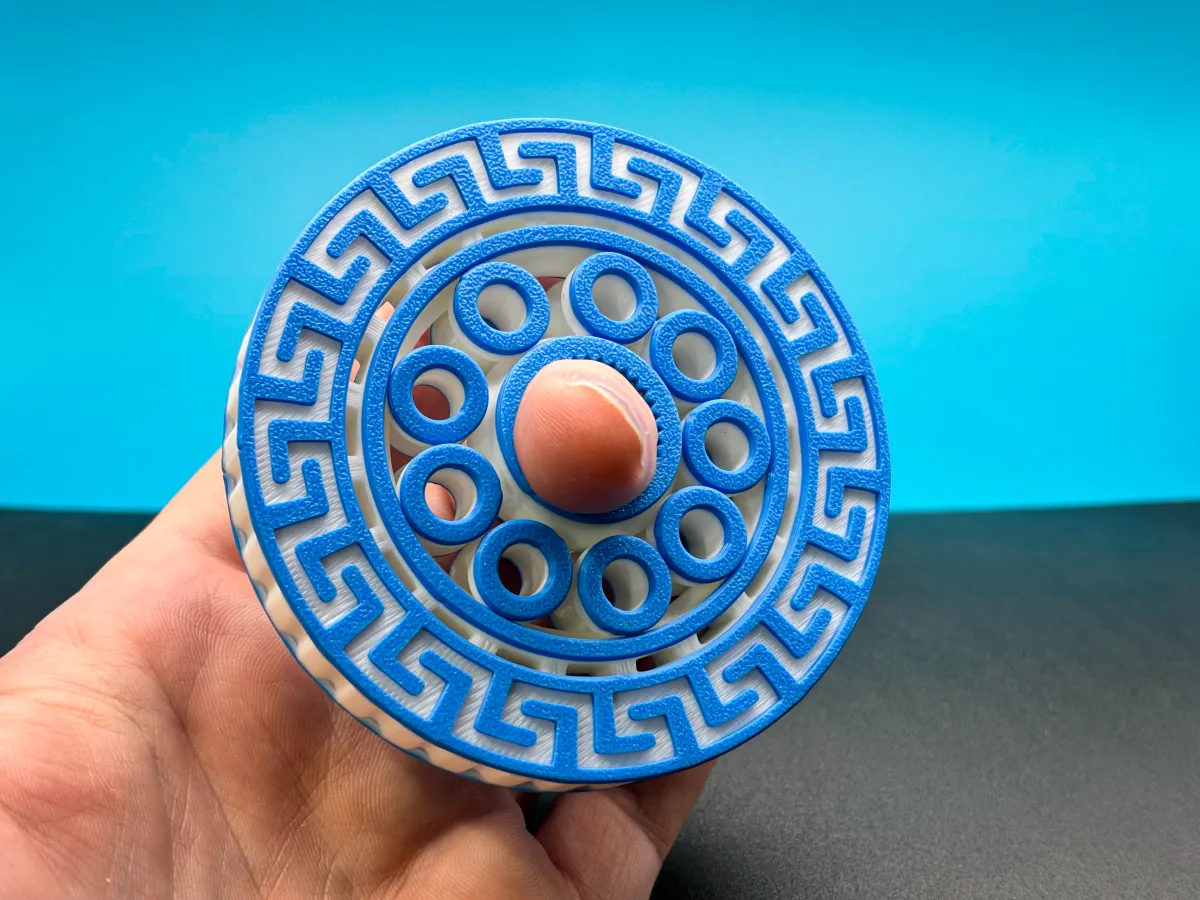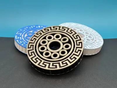 The edge of my fidget spinner features the classic Greek key (also called the meander) a single unbroken line that loops back on itself. This motif became a hallmark of the Greek Geometric period (c. 900–700 BCE) and takes its name from the winding Maeander River in Anatolia. Seen on pottery, temple friezes, and mosaics, it later spread through Roman and Neoclassical design. Often read as a symbol of infinity, unity, and the steady flow of life, it’s a perfect match for a fidget spinner’s continuous motion.