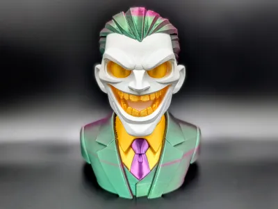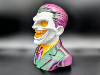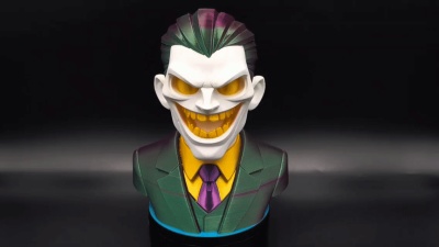 A sharp stylized bust capturing that unmistakable chaotic grin. This piece leans into bold shapes clean planes and a collectible vinyl feel.