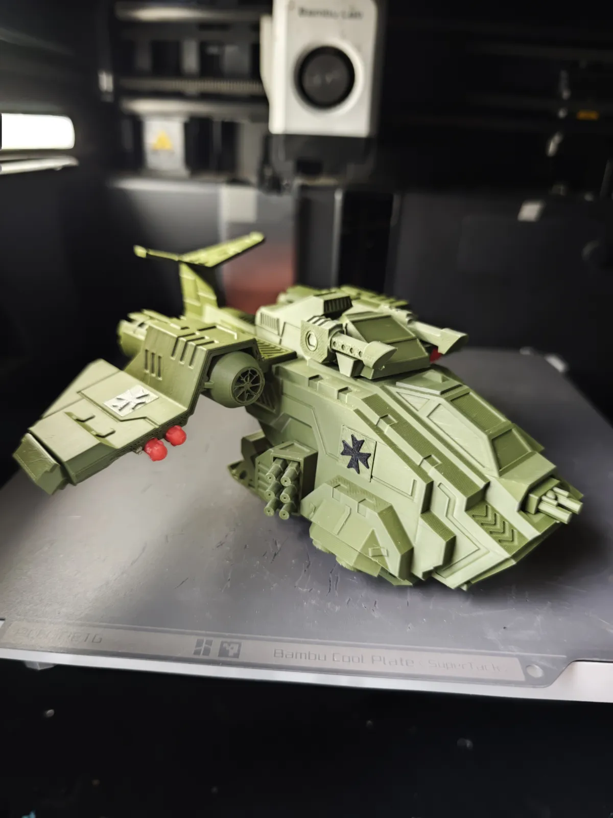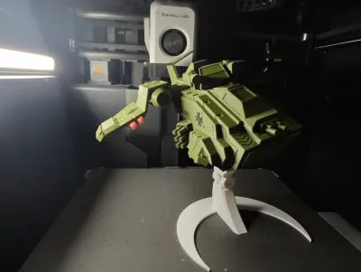 I used a layer height of 0.12 mm to ensure print quality, but this is not strictly necessary. I deliberately designed the six engines and weapons as separate parts that are printed individually and then assembled,