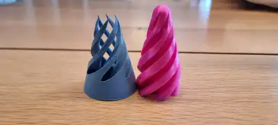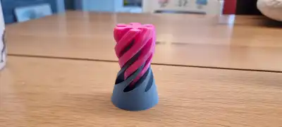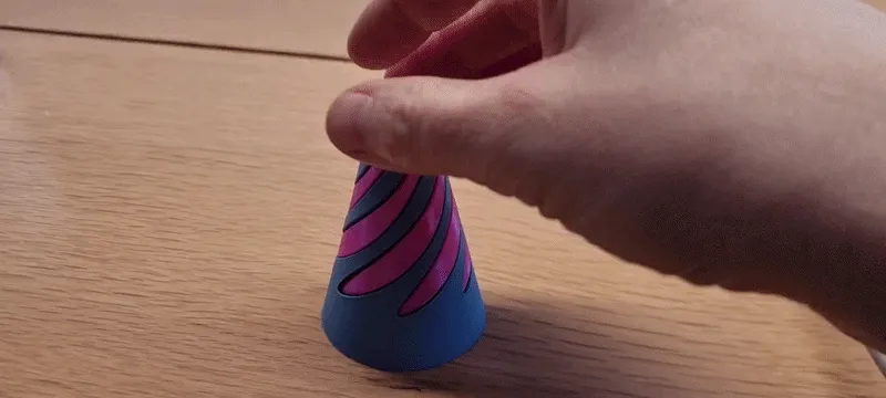 What makes this fidget unique is the "impossible" fit illusion. Because both parts share the same mathematical spiral geometry, the pink core can "screw" through the grey sleeve with incredibly low friction, creating a smooth, flowing motion that looks like the two pieces are melting into each other.