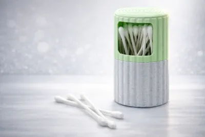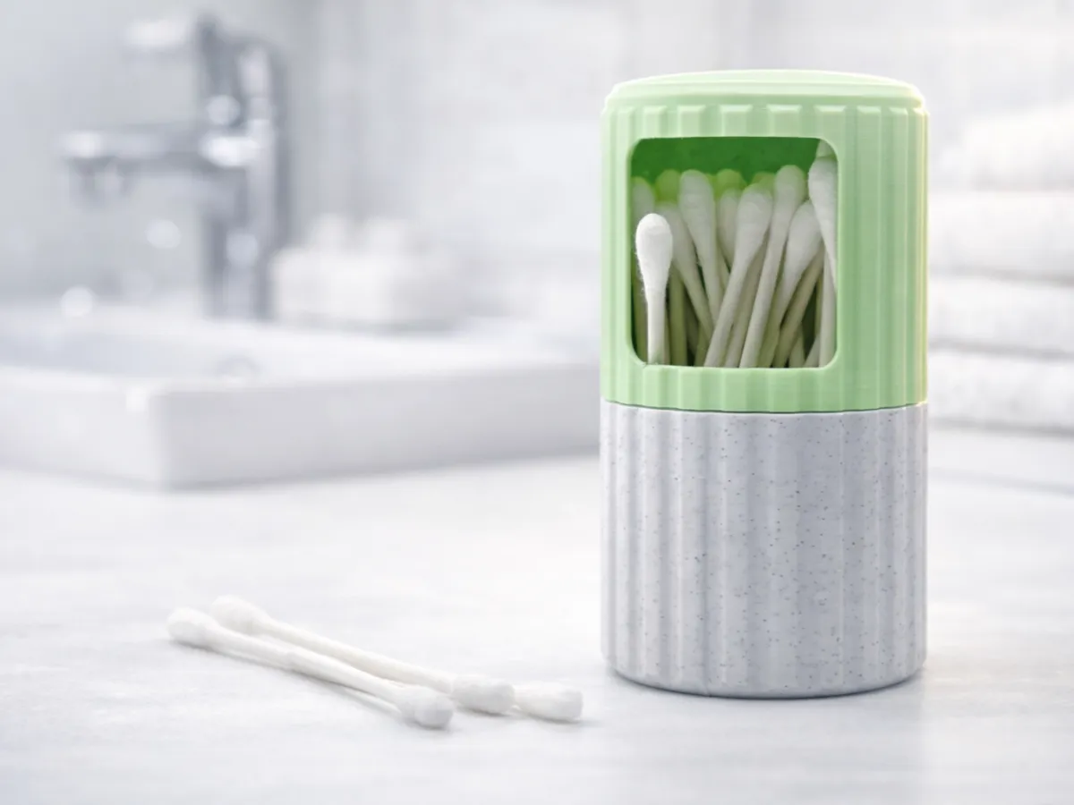 A clean and modern cotton swab holder designed for everyday bathroom use.