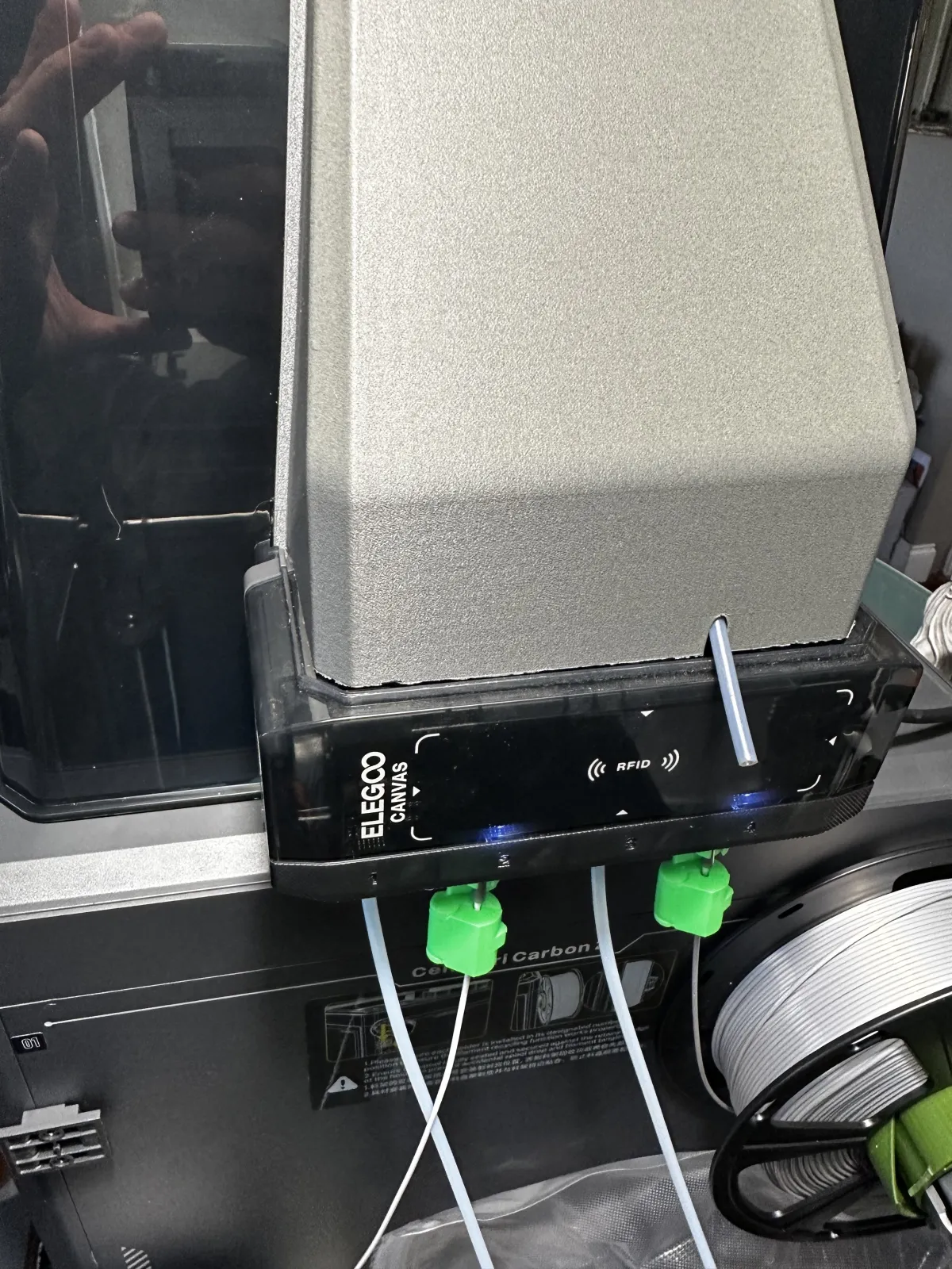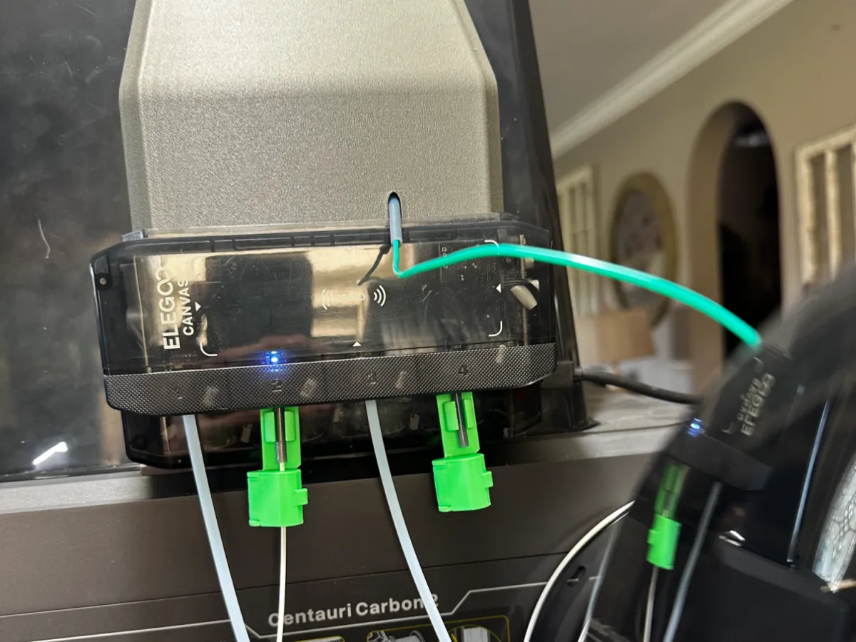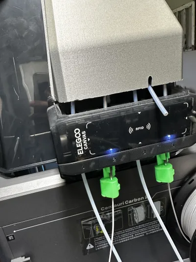 I used the design of the original hood side-attachment but added a notch to allow for a y-splitter to accommodate TPU and other filaments that are not compatible with CANVAS.