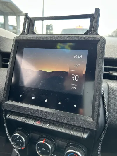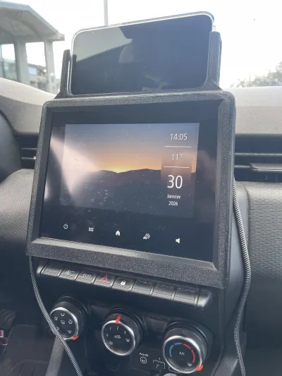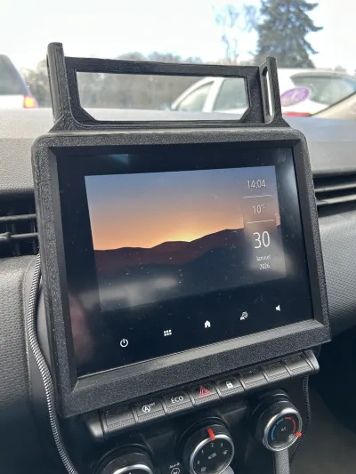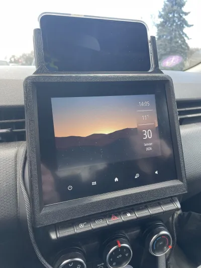 I was looking for a phone holder for my Renault Clio 5 equipped with a 7‑inch EasyLink display (2019 model), so I designed a custom mount that seamlessly integrates with the factory screen without interfering with its functionality, while securely holding the phone at the top.
