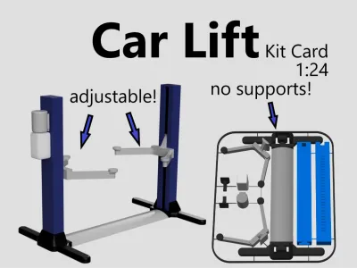 This is a 1:24 sclae model of car lifter in a kit card style. They also fit the 1:24 models I have published. Can also be used for 1:18 scale models.