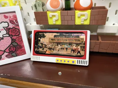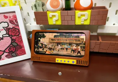 • Judging from the content displayed on the screen—real‑world street scenes—it’s clear this isn’t just a decorative item; it’s a versatile digital display capable of playing videos and visuals (most likely achieved by retrofitting a portable screen, tablet, or media player into a retro‑style enclosure).