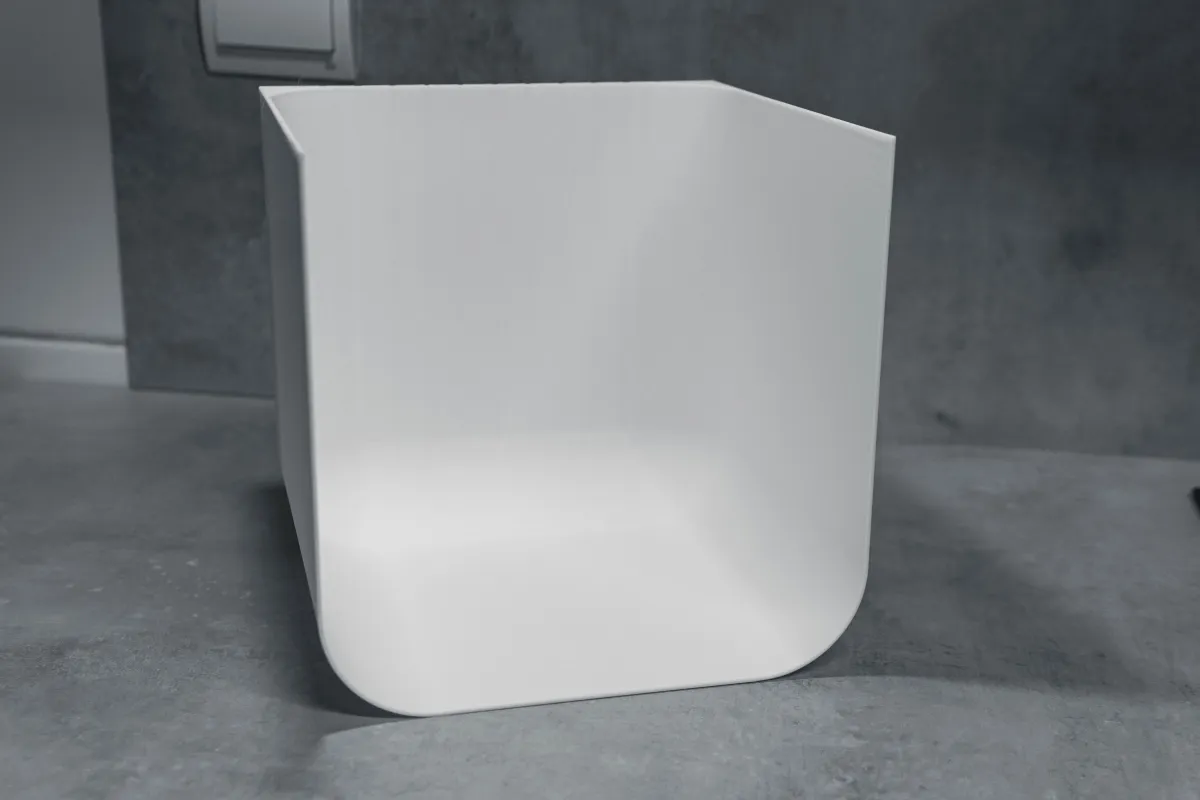 Since it is a big box, there are ventilation lines on the bottom and cutouts on the sides to assist with preventing corner lift and failed prints.