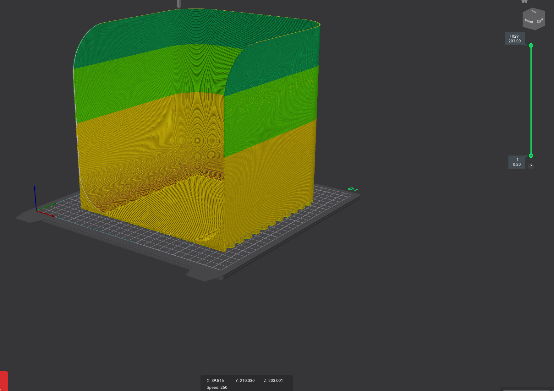 Since the walls are relatively thin, the front edge has been tapered, the seam placed in the back and a gradual speed change modifier has been added.