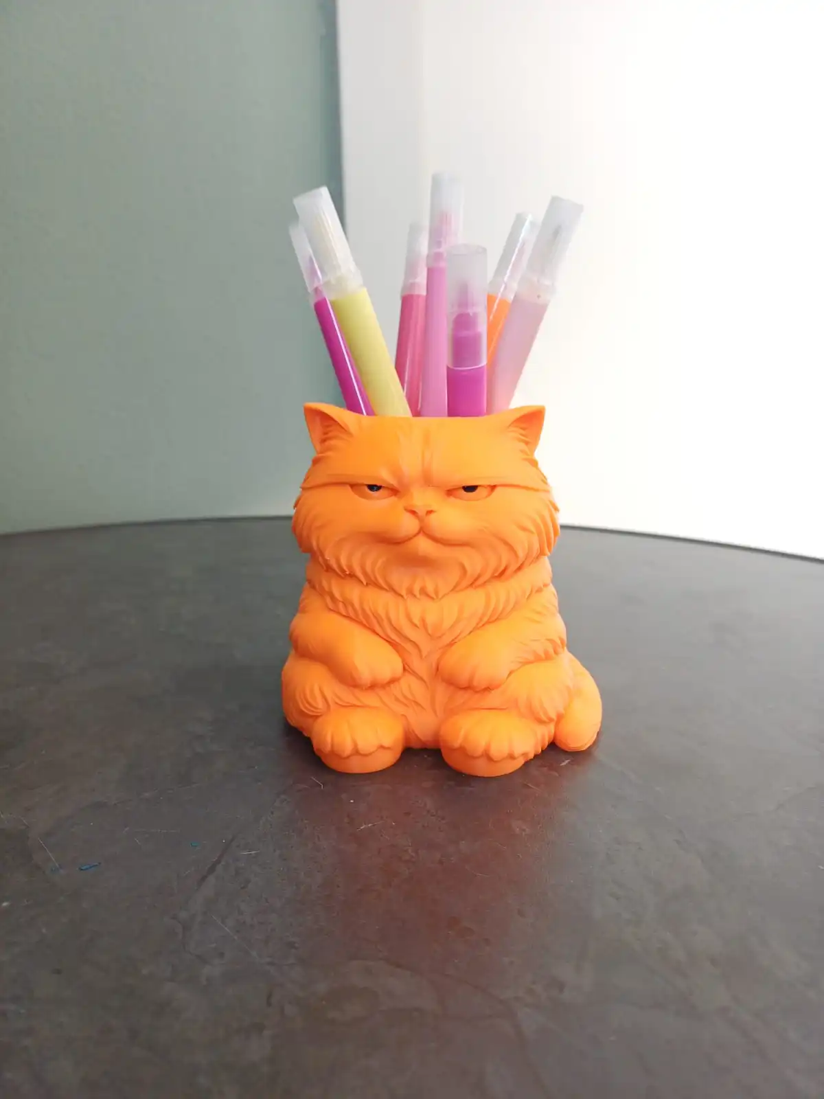 A charming grumpy-looking cat that keeps your pens and tools neatly organized. With its fluffy details and expressive face, this holder adds personality and humor to any workspace. Perfect for desks, studios, or as a fun gift.