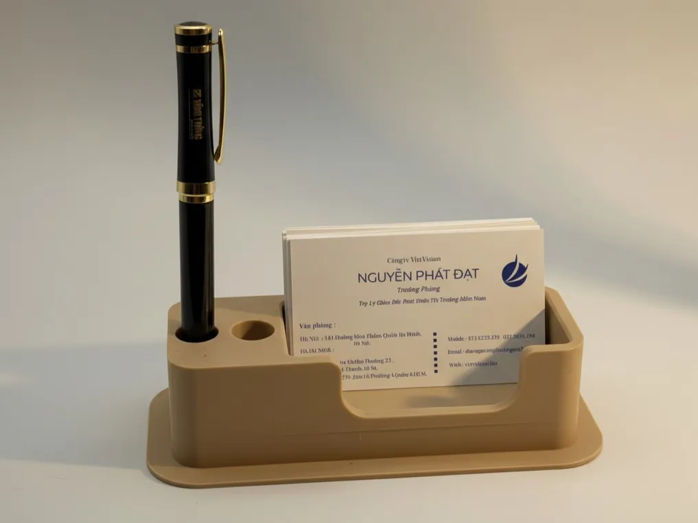 Business Card Holder with Pen Stand – Desk Organizer