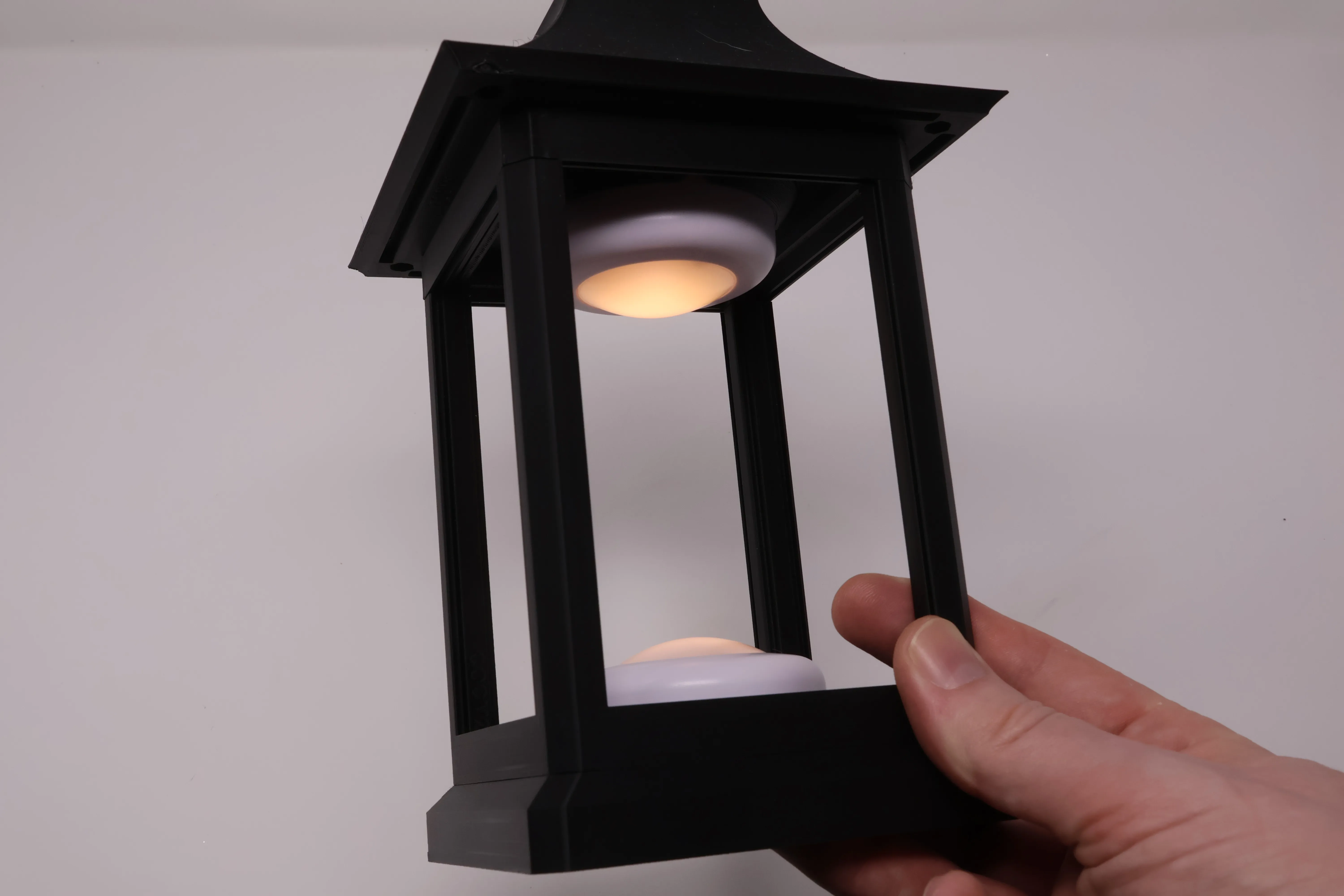 Insert the flat base into the spacer at the top of the lantern to block light if the filament you used for the top lets too much through: