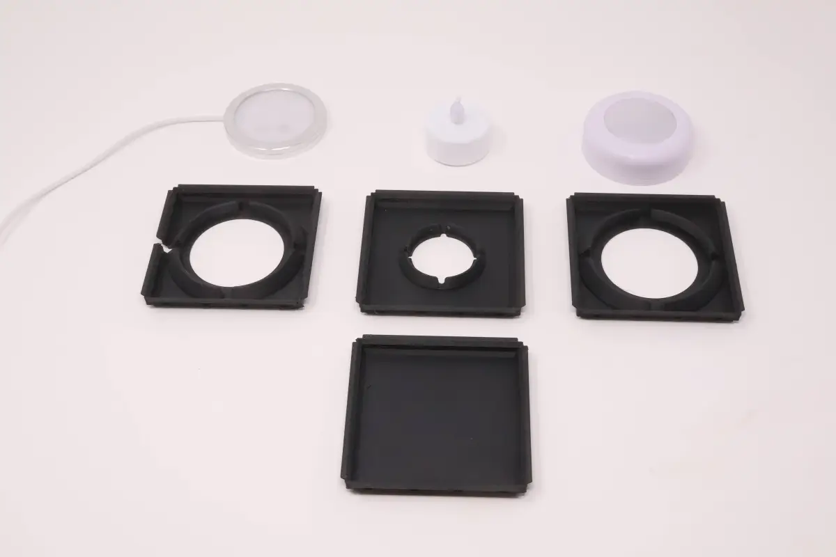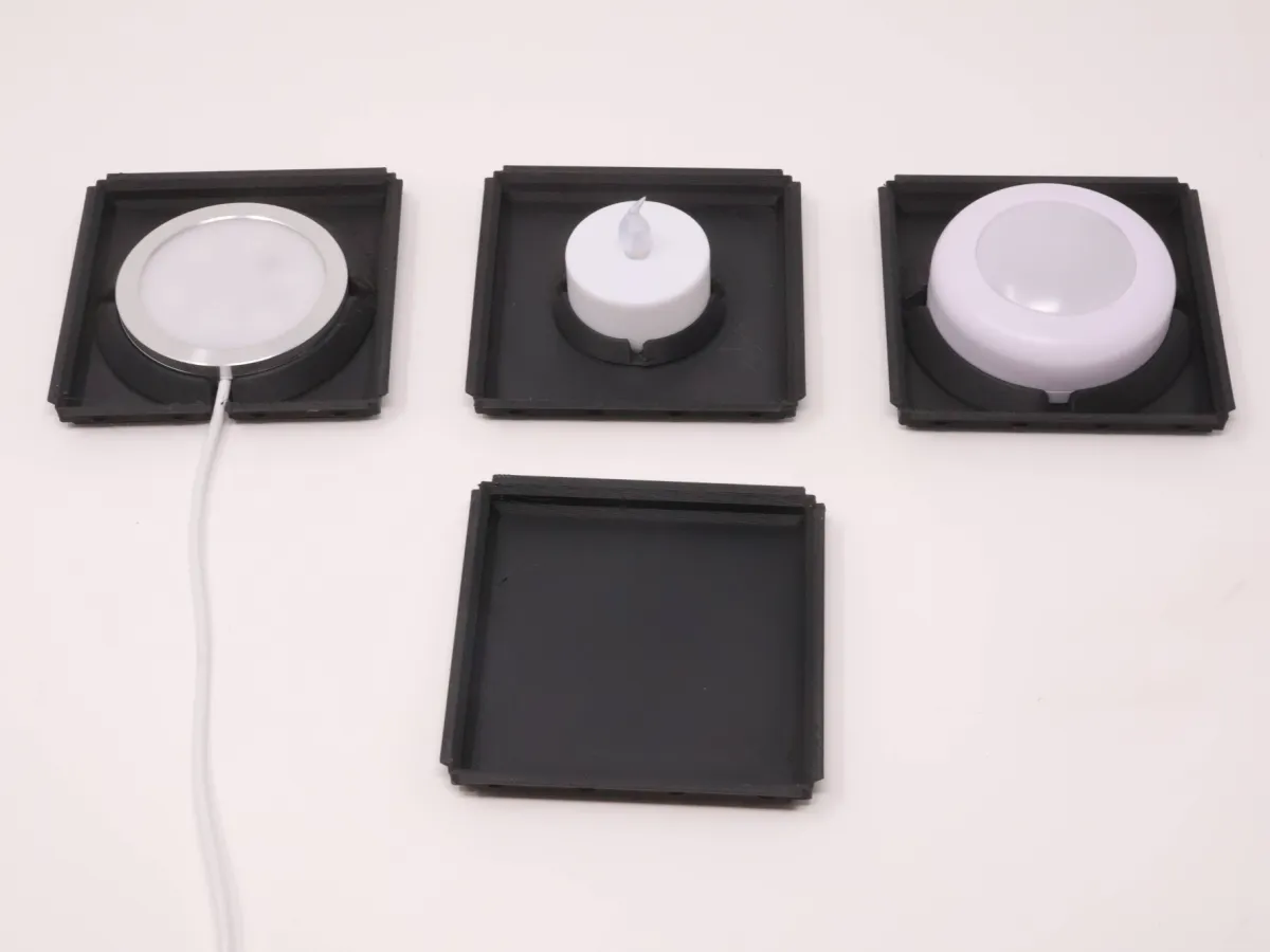 The print profile is configured to work without adjustments with many wired LED Lamp pucks, Tea Light and Puck light. But it's easy to adjust to fit your specific light!