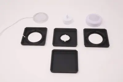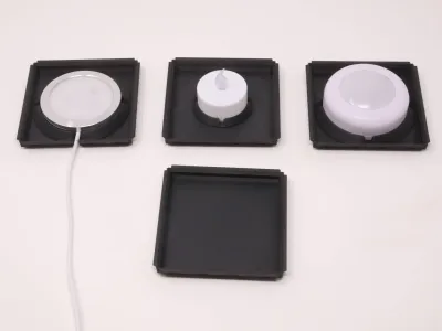 This profile contains a set of parts that allow you to create a base for your Modular Lantern to fit differing diameter LEDs with or without a wire. Or there is a completely blank base where you can use adhesive or Velcro or as the basis for your own base. Many puck lights come with a metallic base to stick to a surface, just stick it to the flat base.