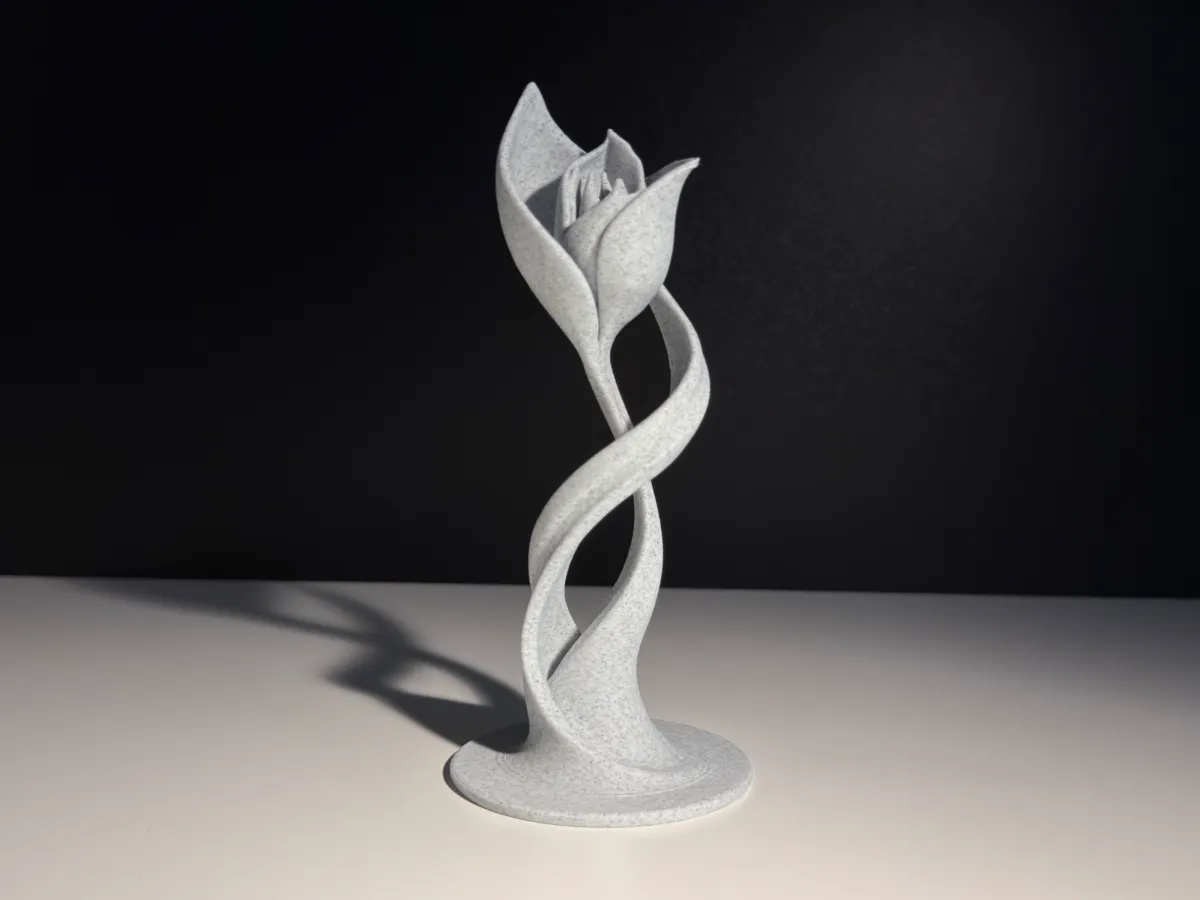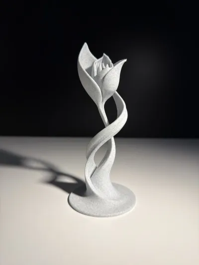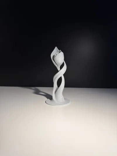 Flower Sculpture 3 presents a refined vertical form built from flowing, twisted lines that lead into a stylized floral head. With an overall height of 150 mm, it works well as a modern decorative accent for shelves, desks, or display spaces. The composition emphasizes elegance and balance, creating a calm yet expressive visual presence.