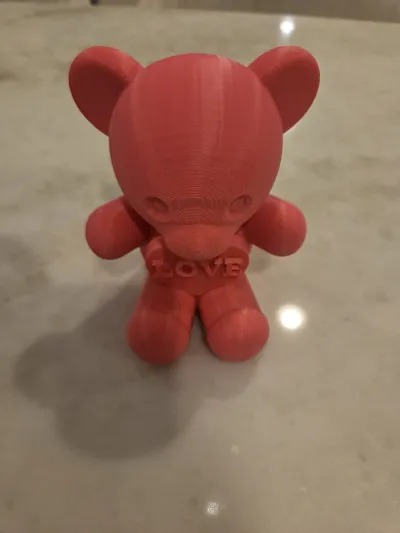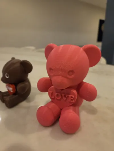 With Valentine's Day coming, I wanted to do something adorable for my kids. I ended up using Tinkercad to make this bear with a heart that they can put in their rooms. It is easy to print with a single color on the Elegoo CC or use a multi-color printer to print it in color.
