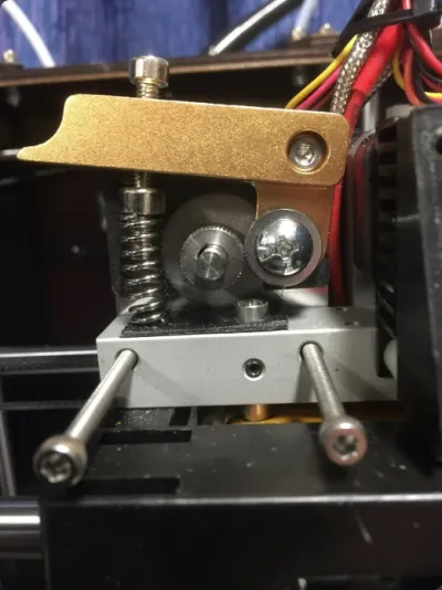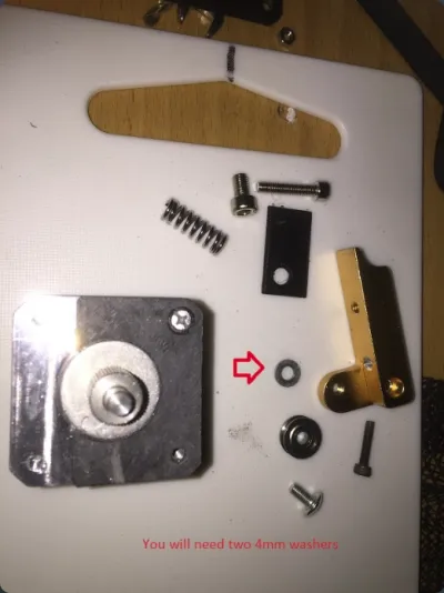 The second part to join it was the Traction Gear wheel, as I wanted to retail the original so as not to have Calibration problems. The Crank arm fitted (nearly) it needed shimming out to line the very nice grooved bearing with the throat of the Nozzle, so to was the Spring, Spring cap (an M5 short allen screw) and a tension adjusting Allen screw. So we've kept about half of the Kit... :)