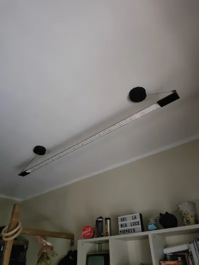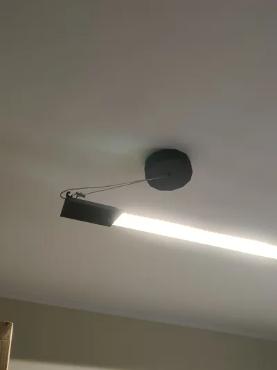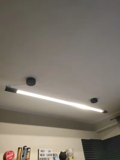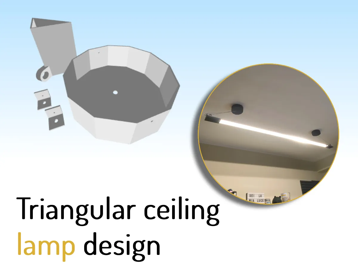 lampada da soffitto realizzata in alluminio , in stampa 3d e con una striscia led smart, la lunghezza è variabile in base a quale profilo angolare si sceglie. io ad esempio l'ho presa di due metri, ogni latro del profilo in alluminio misura 5,5 cm ma se lo prendi da 5cm di lato va bene lo stesso, poi ci ho attaccato una strip led da 20 metri che ha coperto l'interna parte interna dell' angolo in alluminio, invece per il soffito ho realizzato due scatole con una forma geometrica per nascondere all'interno l'alimentatore e cavi della luce. una delle due scatole è solo per simmetria e bellezza, infine ho preso del cavo in acciaio per legare la luce al soffitto, con dei fischer ad anello. io per tutto il materiale ho speso solo 50 euro, invece per comprare una lampada cosi grande ci vogliono alemno 300 euro. nel mio caso la luce viene comandata con alexa ed è smart sia per la potenza che per la colorazione della luce, che va dai 3000k ai 6500k.