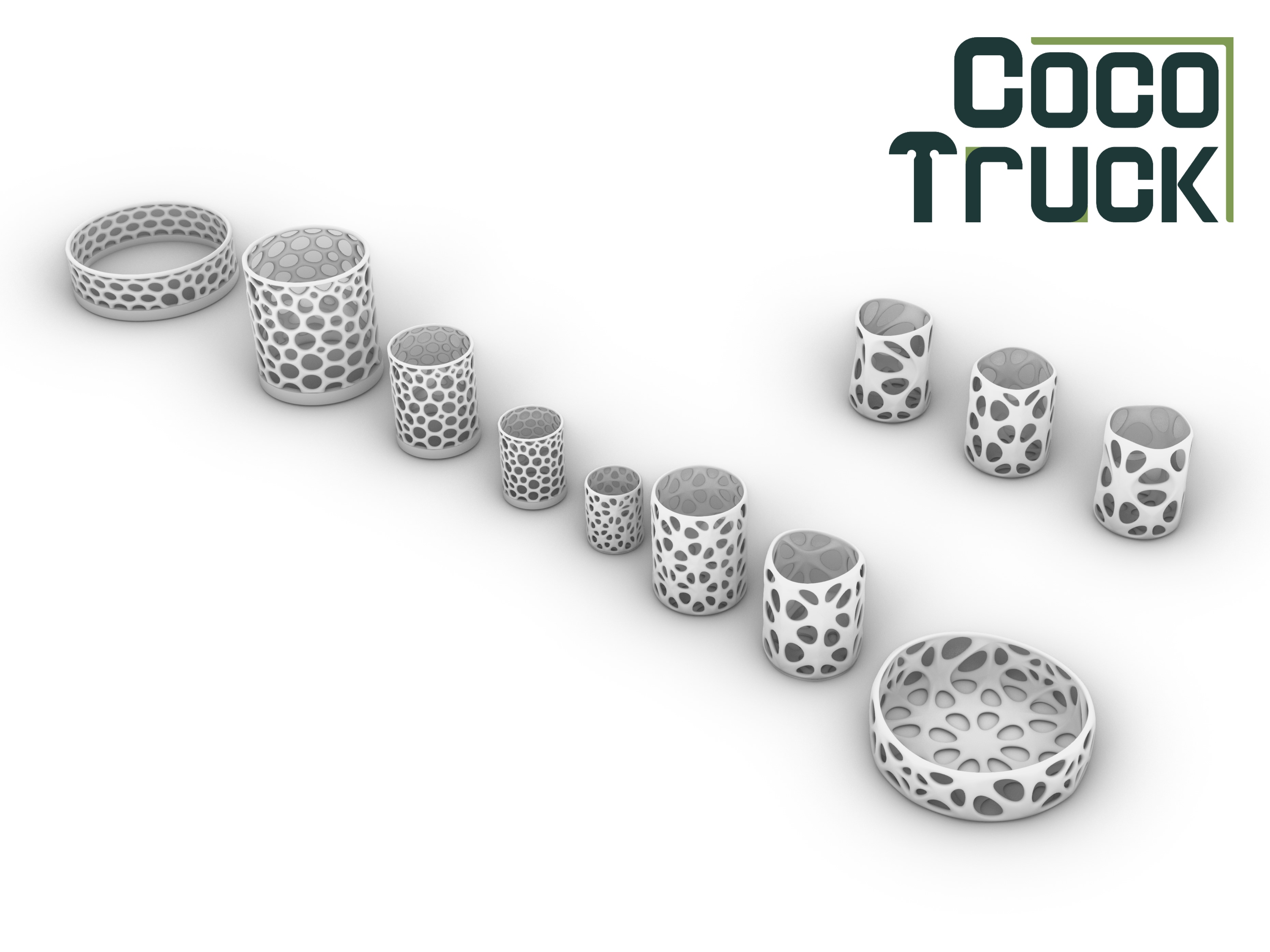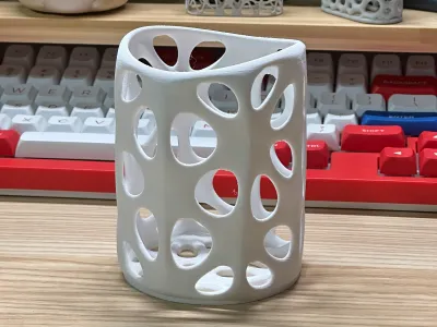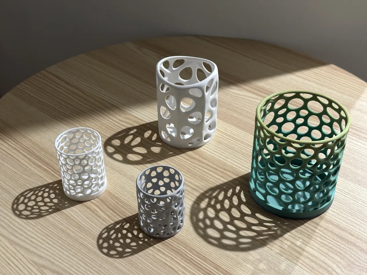 A collection of parametric surface–based artistic storage models that seamlessly integrate large and small pen holders, desktop trash bins, and entryway key baskets: