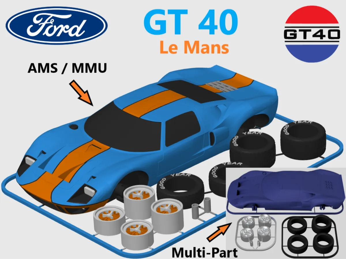 This is a model of a Ford GT 40 (Le Mans) in a kit card style. Some characteristic details can be discovered. Equipped with seperate exhausts ;-)