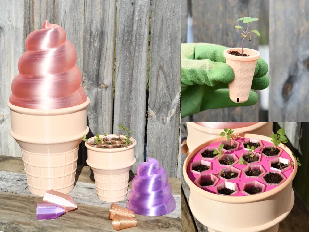 Introducing the Ice Cream Cone Greenhouse Seed Starter Kit—a delightful fusion of whimsy and functionality, perfect for gardening enthusiasts and 3D printing aficionados alike. This innovative kit transforms the classic ice cream cone into a charming, self-watering greenhouse, making seed starting both fun and efficient.