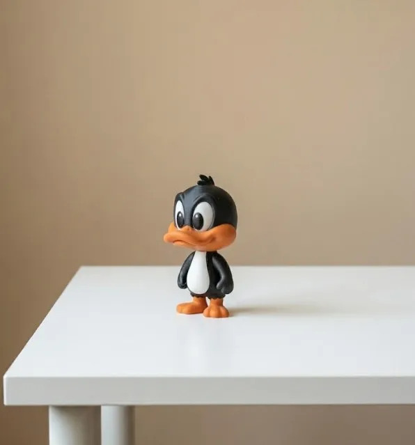 Bring a touch of classic charm to your space with this stylized Baby Daffy figure.
