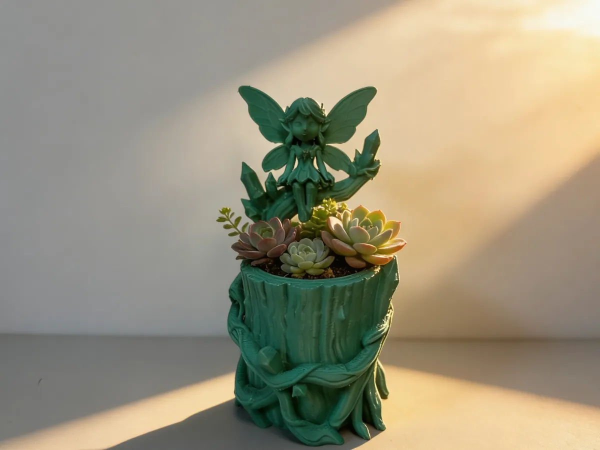 It employs 3D printing to faithfully replicate natural textures: the trunk of the pot is intricately wrapped with twisting vines, while delicate crystal clusters subtly conceal little everyday surprises; a fairy rests lightly on a branch, her wings as sheer as cicada wings, still glistening with morning dew—so soft they seem capable of soothing every ounce of fatigue.