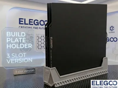 This 3D model is a practical organizer (holder) for build plates for Elegoo 3D printers.