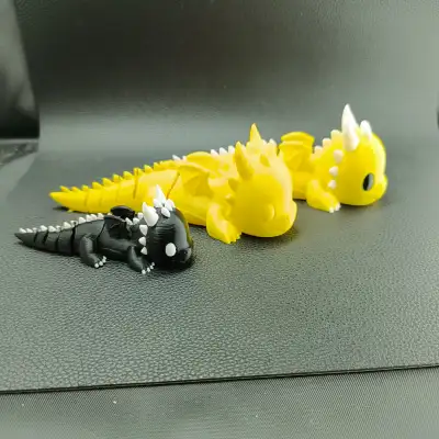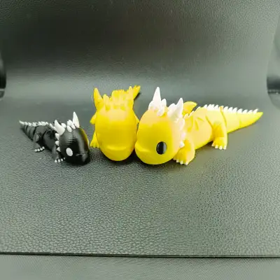 This dragon features a rounded chibi head, expressive eyes, detailed spikes, and flexible articulated body segments that allow natural wiggling and posing straight off the print bed. The model is optimized for FDM printing and prints beautifully with clean layer definition.