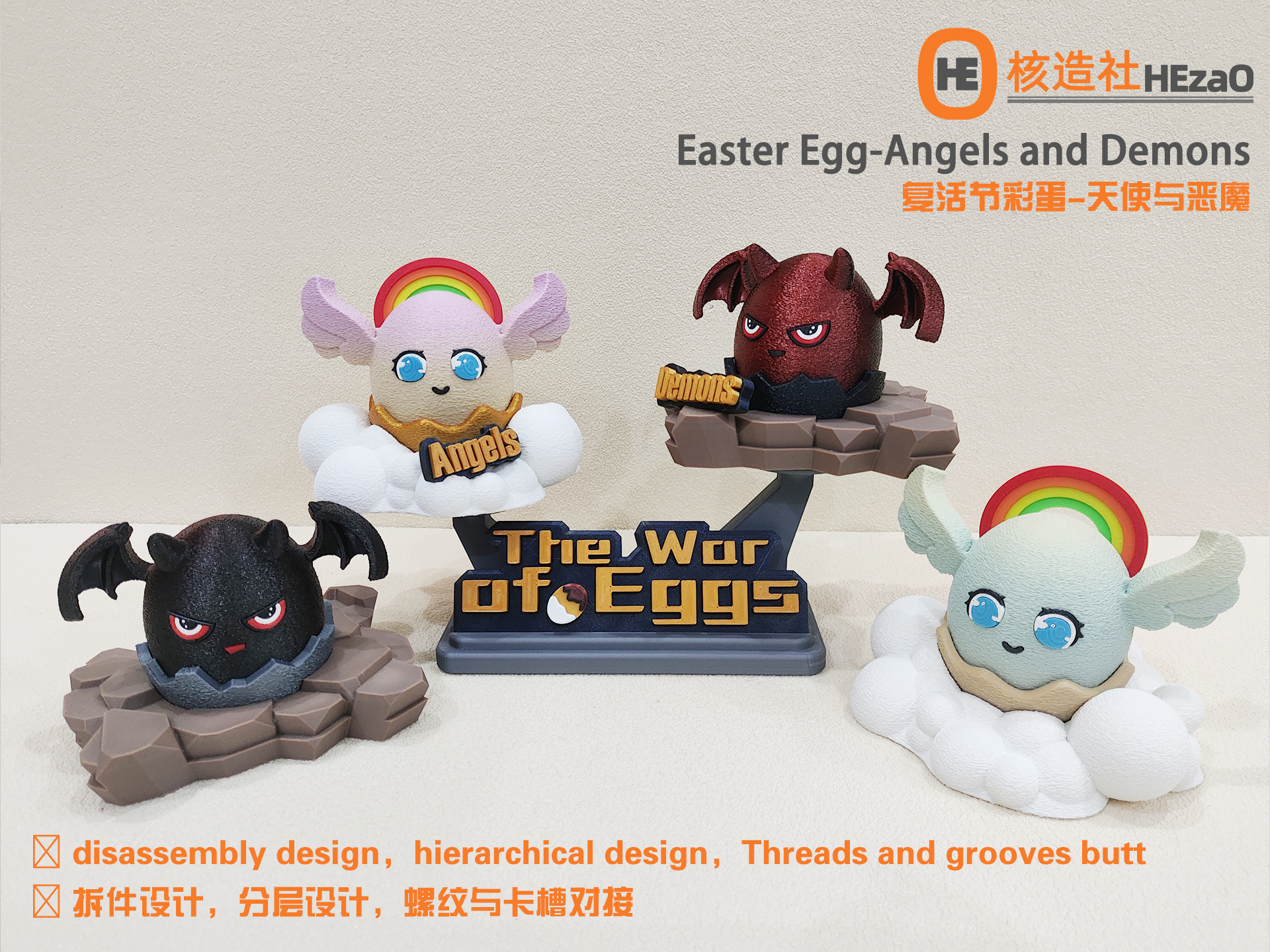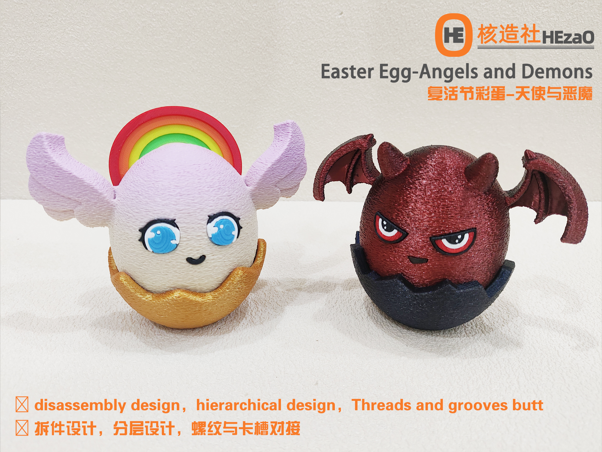 为复活节专门设计的一组精致的彩蛋摆件,分别是天使彩蛋和恶魔彩蛋。