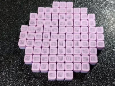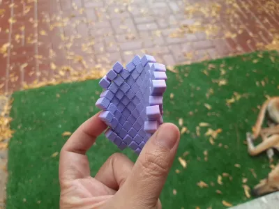 This 3D‑printed fidget coaster features a tightly arranged cluster of small, textured cubes that form a compact geometric shape. Each cube has a soft, foam‑like appearance with a tactile top surface designed to be pressed, tapped, or rolled under the fingers. The pattern creates a satisfying grid that invites fidgeting while still functioning as a stable coaster. Its playful purple color and precise arrangement give it a modern, eye‑catching look—part practical accessory, part sensory toy.