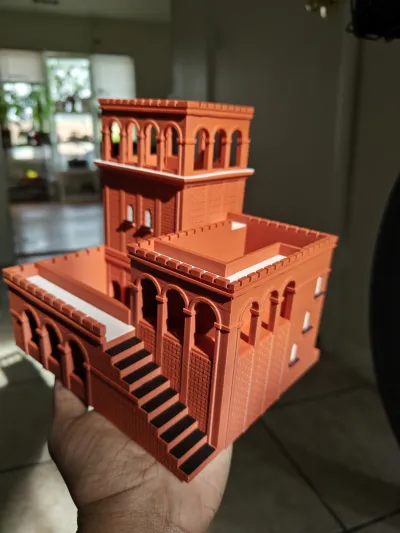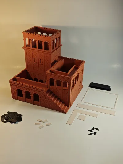 Straightforward assembly → Post printing, assemble in this order: terracotta, black, beige; use superglue.