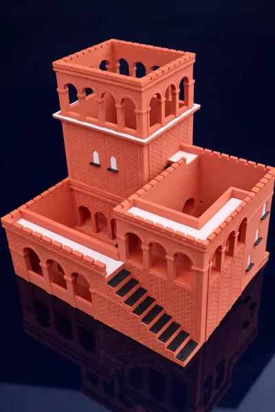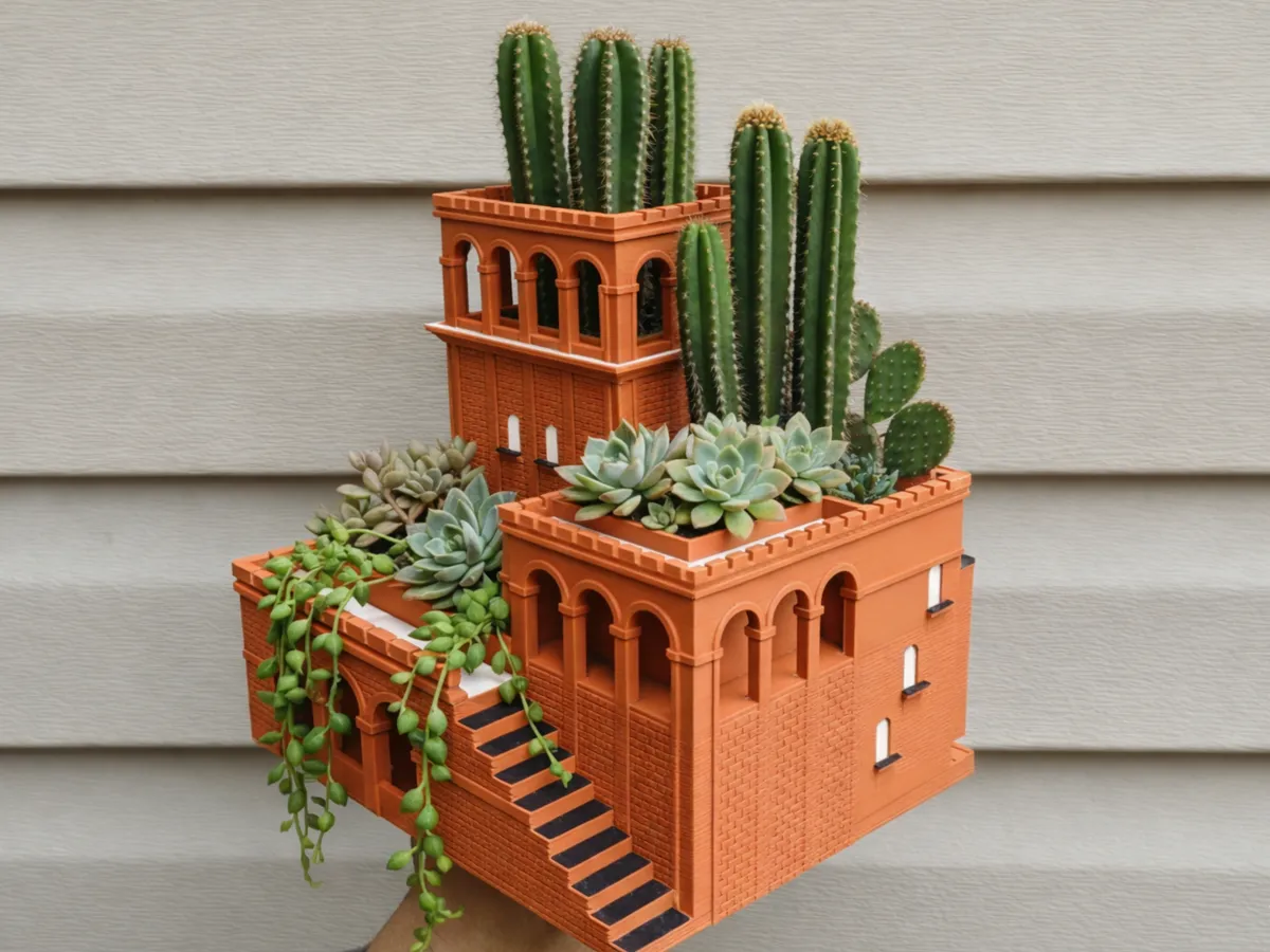 This Neo-Roman architectural planter translates arcades, stepped terraces, and classical brick massing into fully functional planting zones. Every roofline and recessed level is engineered as usable soil volume — no decorative dead space, only intentional geometry.