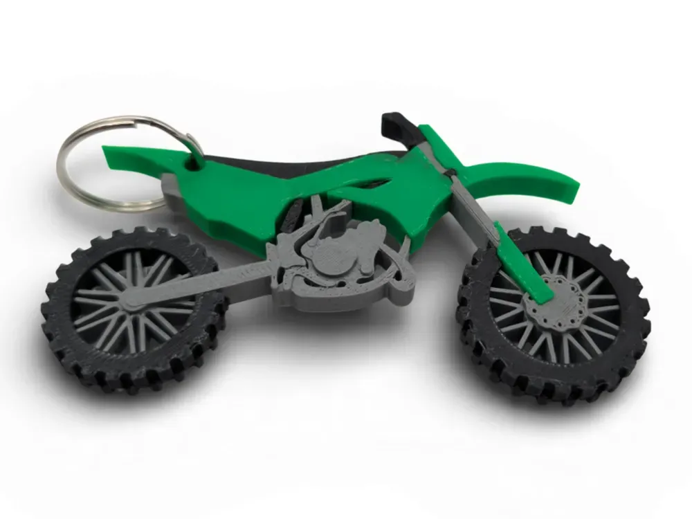 Designed for motocross fans, riders, and racing enthusiasts, this keychain features the classic lime green bodywork, black seat/tires, and a detailed engine profile. It’s printed flat for maximum strength and ease of printing—perfect for your bike keys, backpack, or as a gift for a young rider.
