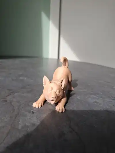 With its alert ears, curled tail, and lively expression, this figurine perfectly reflects the curious and playful nature of a young husky.