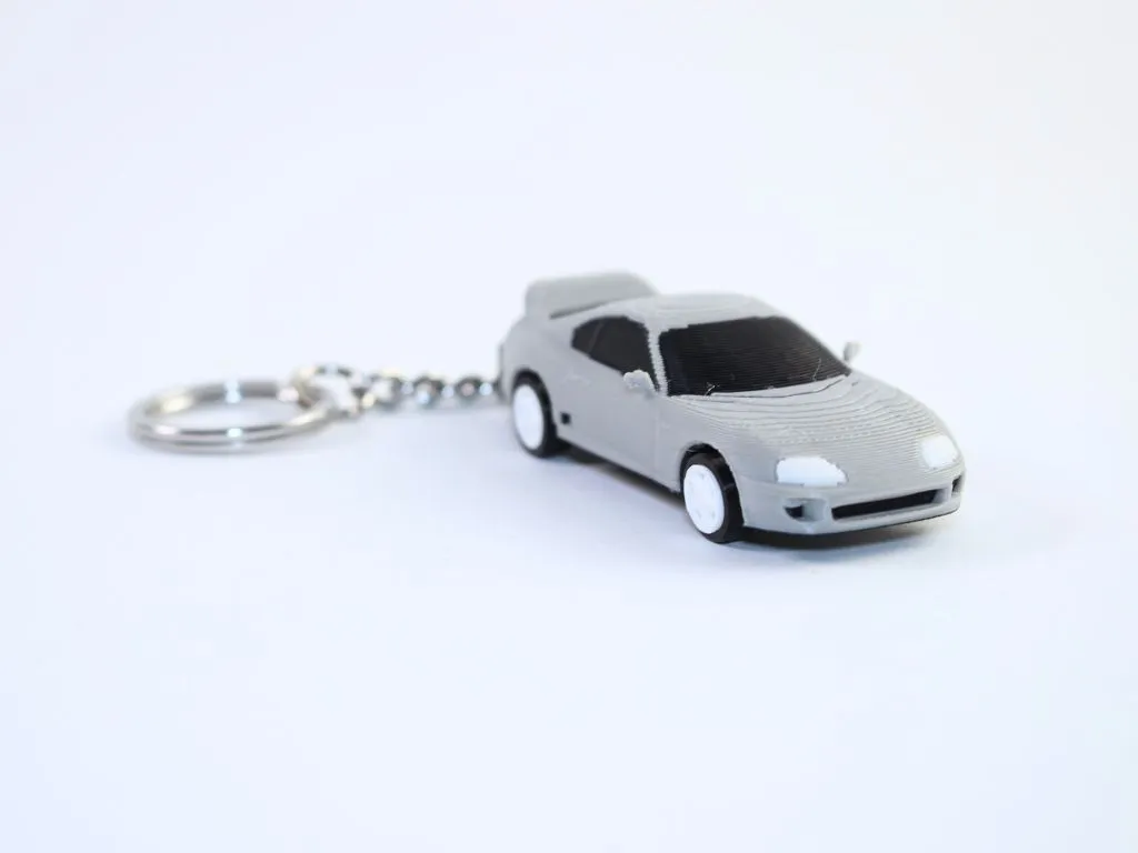 Toyota Supra MK4 model keychain in 1:64 scale, perfect for your keys.