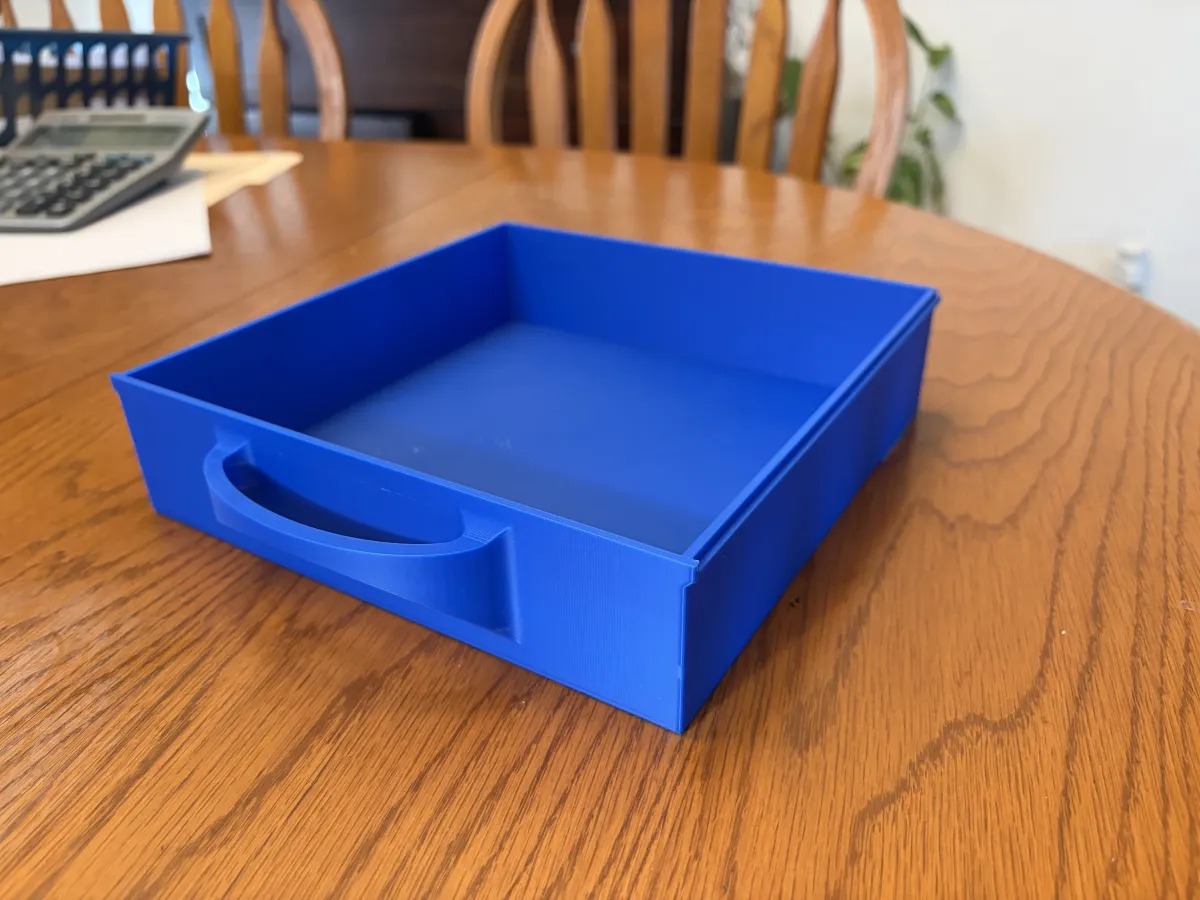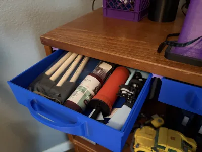 I made these under desk drawers you can screw onto your desk using M3 wood screws. The drawers are 8 by 8 inches and 2 inches tall. The rails are double sided for when you choose to add a second drawer you only need to one more rail. I reccomend using PLA plus or any stronger variant of pla if you plan on keeping these with a constant load over a long period of time. Enjoy!