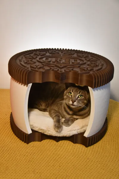 This Oreo Cookie Cat Bed is designed to look like a giant cookie, complete with realistic ridges and a playful bite-shaped entry hole that lets your cat crawl straight into their own sweet retreat.