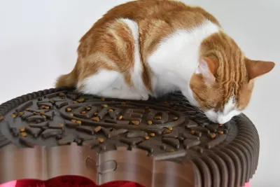 The raised Oreo pattern on the top doubles as a treat-holding surface. Scatter treats or kibble into the grooves to turn snack time into a fun mental challenge.