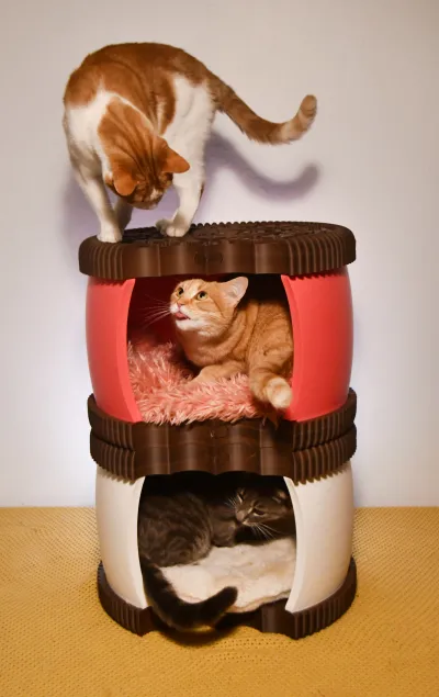 Print the optional stacking extension to safely stack two or even three cookies high, creating a towering cookie hideout your cats will adore. Each level stays accessible while adding vertical interest and extra coziness.