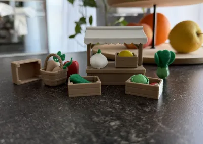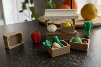 Bring a charming market atmosphere into playtime, learning, or display with this wooden-style fruit & vegetable shop. Designed with simplicity and warmth in mind, this miniature stall captures the essence of a cozy farmers’ market in a clean, friendly form — perfect for children’s play sets, educational scenes, or decorative collections.