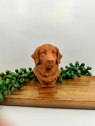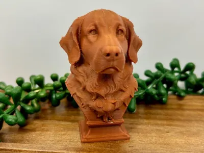 Capture the gentle spirit of man's best friend with this highly detailed Golden Retriever Bust. This 3D model is a tribute to one of the world’s most beloved dog breeds, focusing on its friendly expression and iconic flowing fur.
