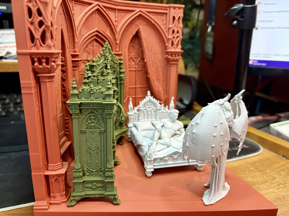 This diorama captures that frozen moment—the instant where certainty turns into realization, and elegance gives way to something far more unsettling.