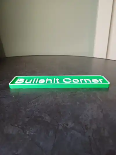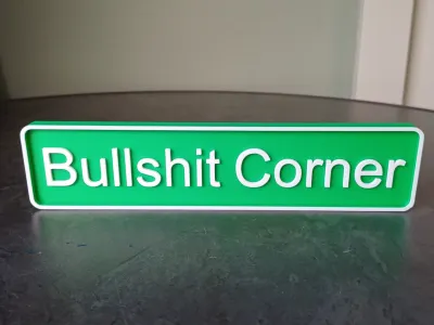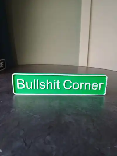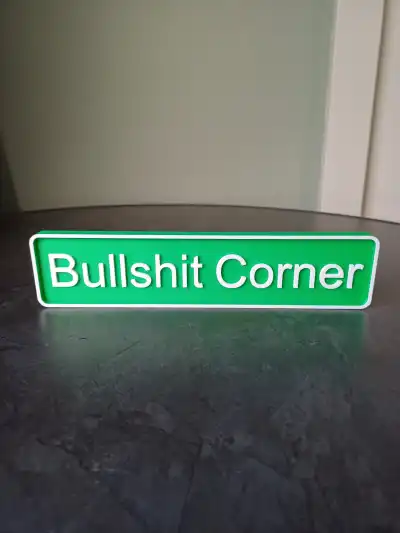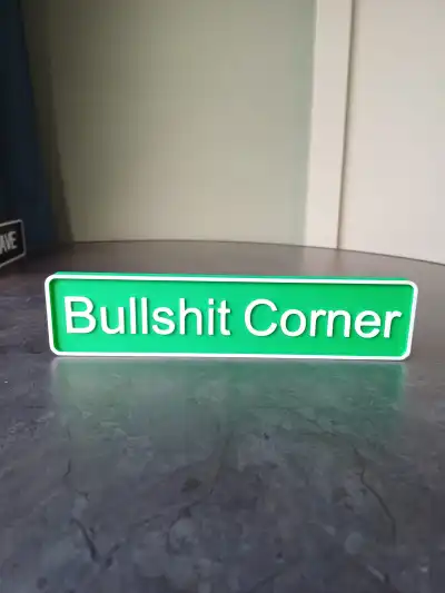 Mark the spot where the nonsense happens with this “Bullshit Corner” sign. Perfect for offices, workshops, or break rooms, this 3D printed sign adds a bold dose of humor to any space.