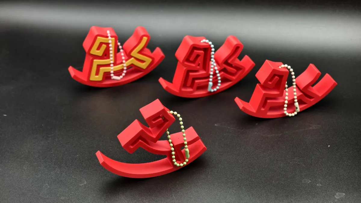 These bouncy Horse Year logo rocking car pendants come in four designs, each featuring a 3mm hole—perfect for use as both a desk toy and a stylish pendant.