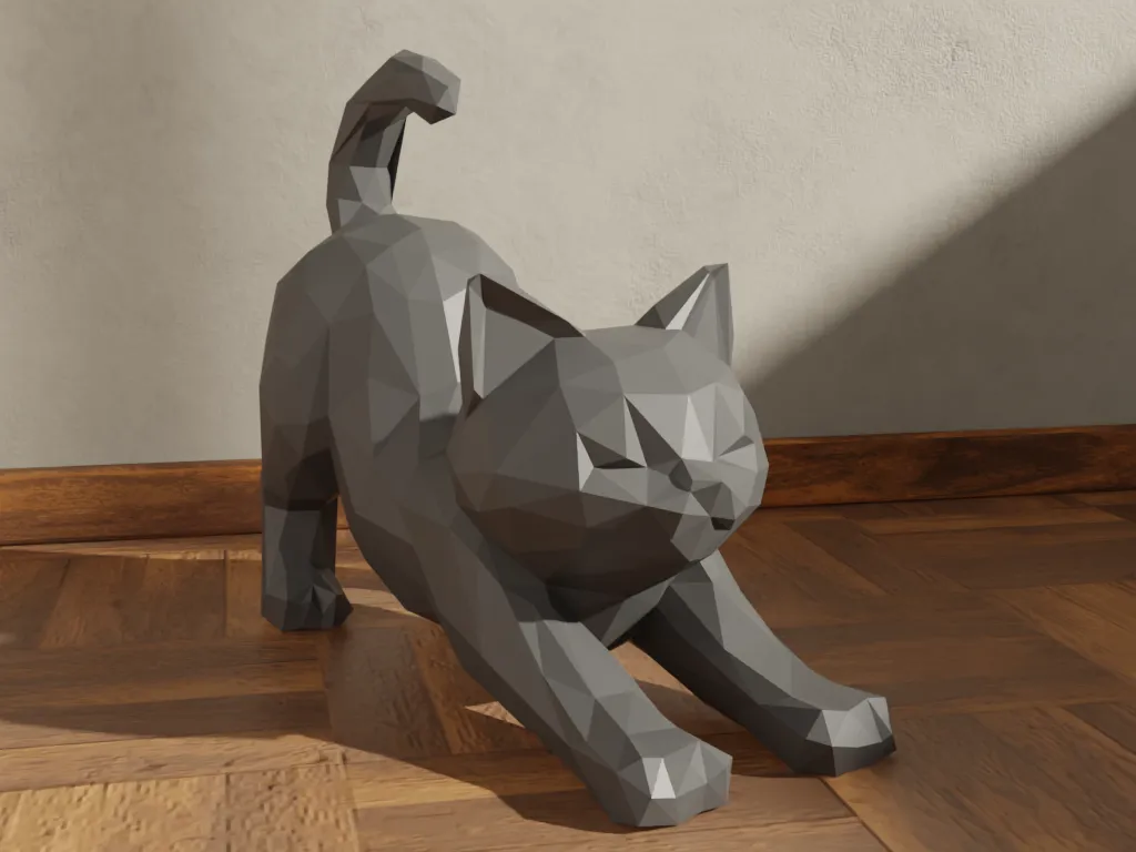 Add a sleek and modern touch to your space with this low-poly 3D cat model. Featuring sharp geometric facets and a refined sculptural form, this design captures the curiosity, elegance, and quiet confidence of a cat in a contemporary, artistic style. Perfect as a decorative display or creative print project, this model is ideal for cat lovers, design enthusiasts, or anyone looking to add personality and charm to their home or workspace.